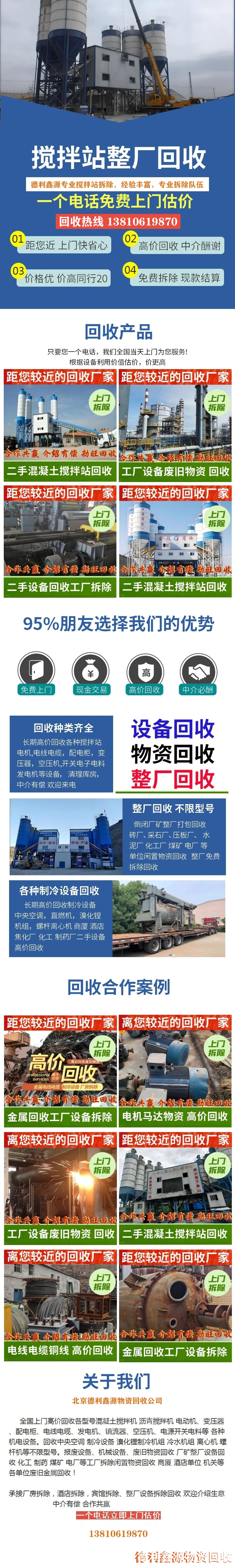 專業攪拌站拆除回收,二手攪拌站設備、水穩站、粉罐等配件回收。全年交易,專業團隊,型號齊全。誠信高效服務,24小時響應,免費上門,快速報價。重信譽,現金交易,面向各類客戶。